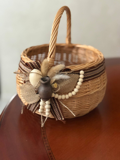 Кошик дитячий для Пасхи з натуральної лози з етнодекором — ручна робота.